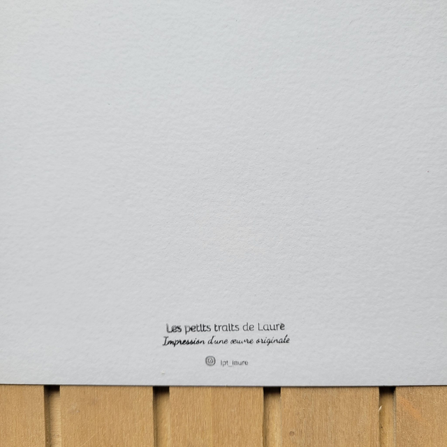 Imprimée avec une imprimante à jet d'encre sur papier grain fin (260g/m2).